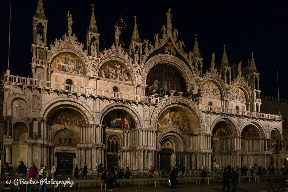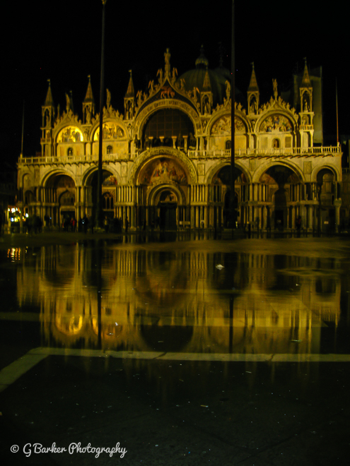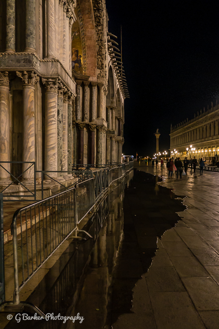 The Acqua alta (High Water) starts to rise outside St. Mark's Basilica
