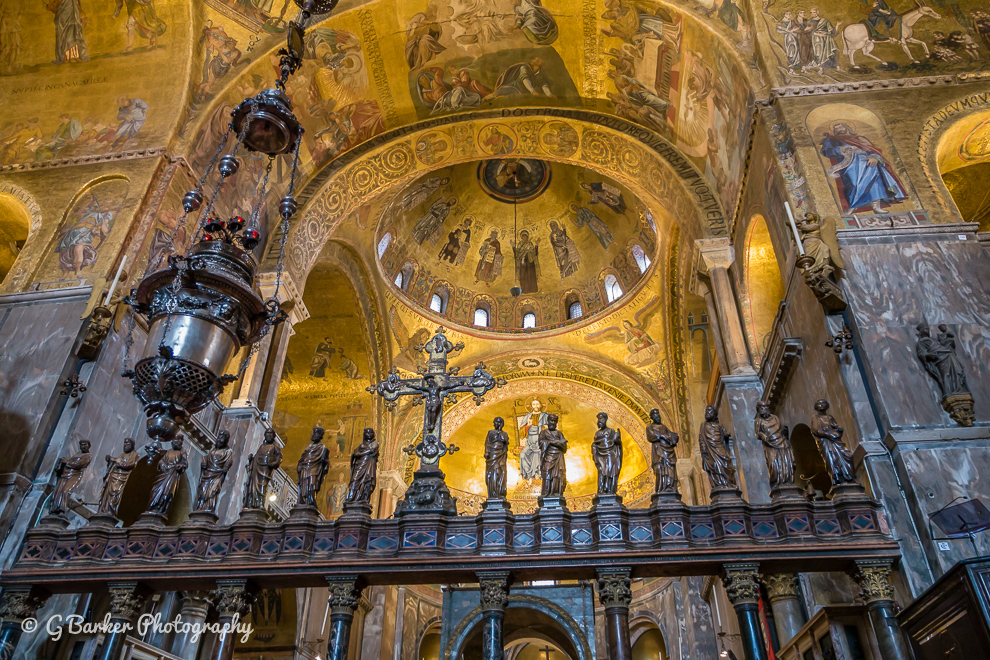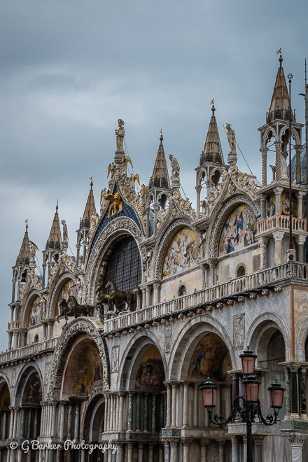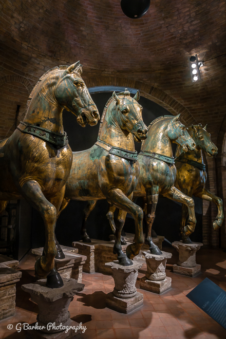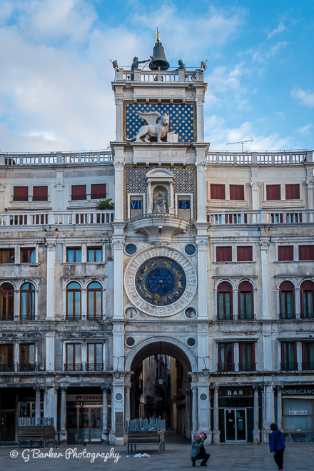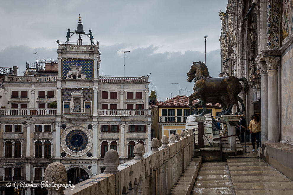 The Replica Horses of Saint Mark overlook St. Mark's Square and Clocktower