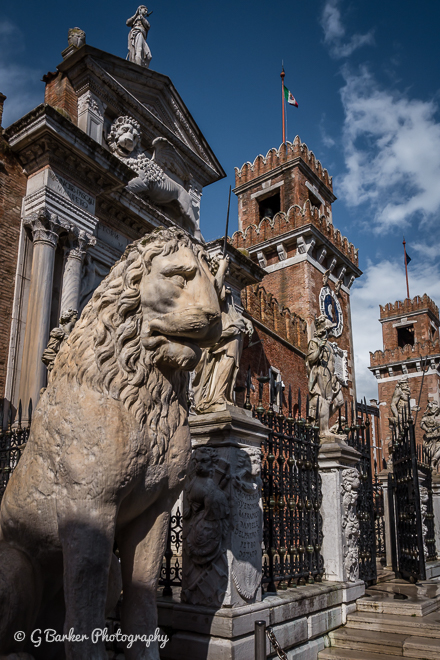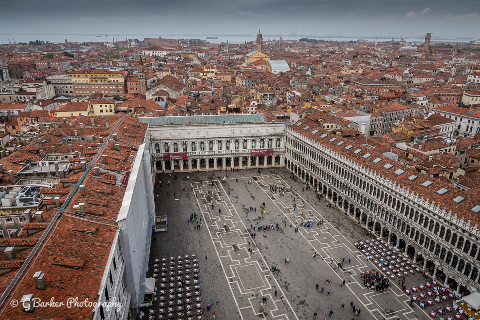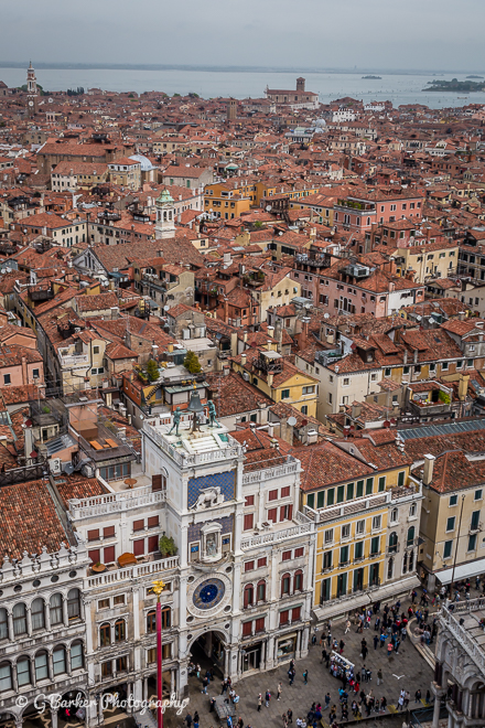 Looking down onto the Clocktower and Venetian rooftops from the Campanile