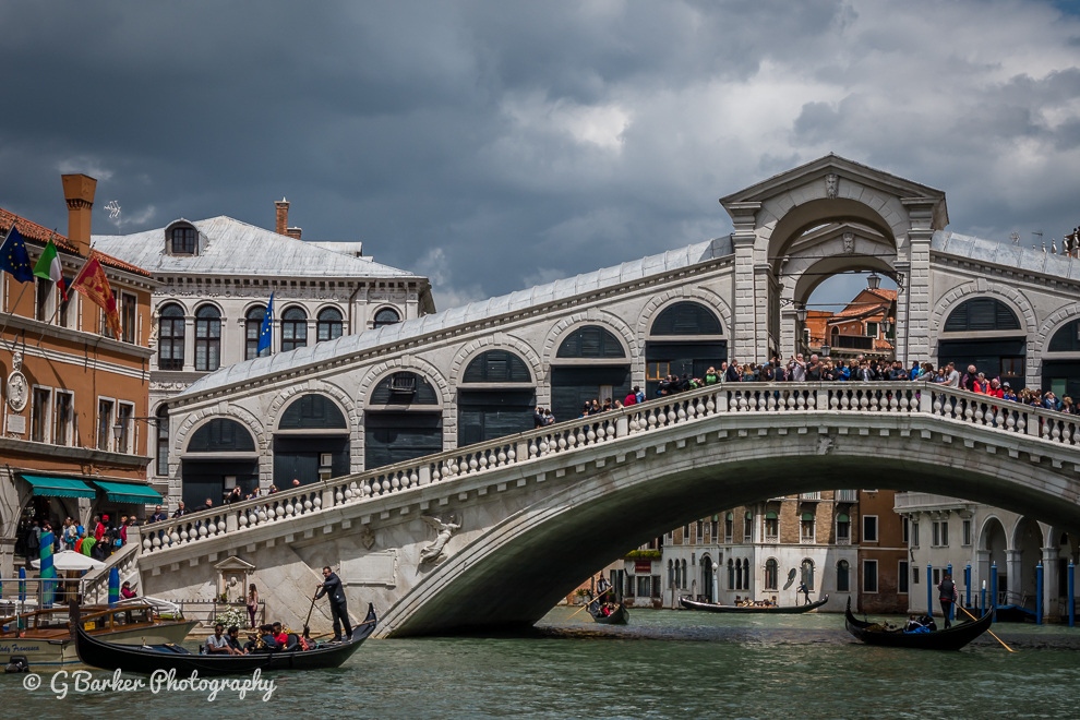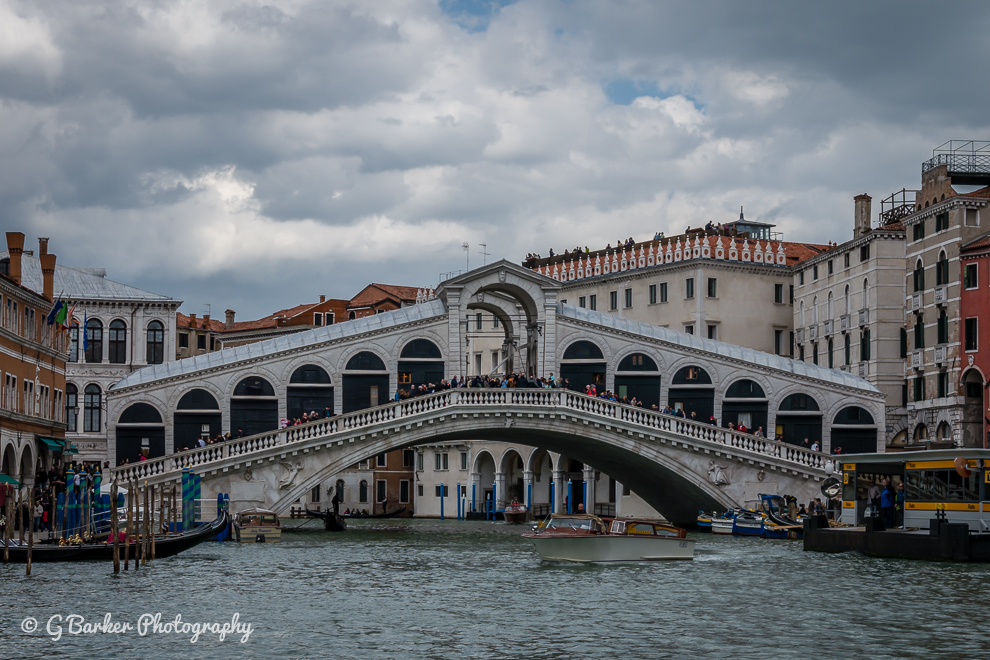 The Rialto Bridge is one of the four bridges which span the Grand Canal