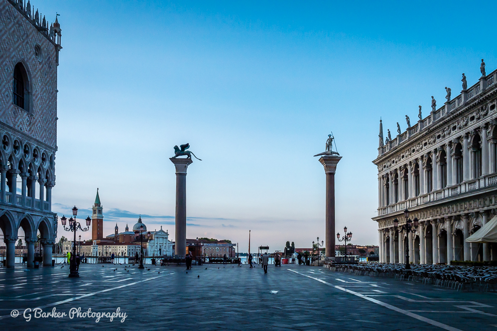 The Piazzetta di San Marco with the columns of The Lion of Venice and St. Theodore